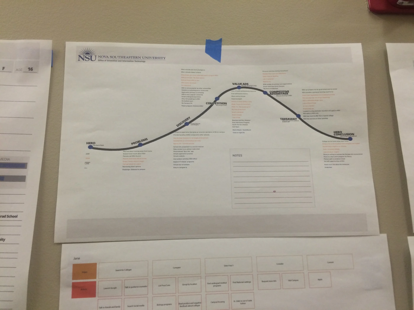 While working with Nova Southeastern University I planned a Journey Mapping workshop for team members from other department to join us for an introduction to user-centered design and user empathy. I facilitated a process to teach them as well as some of our team members about user experience design. Here our participants got to use their knowledge and some user research to build prototype personas and take them on a journey through selecting an applying to a couple of the universities programs.